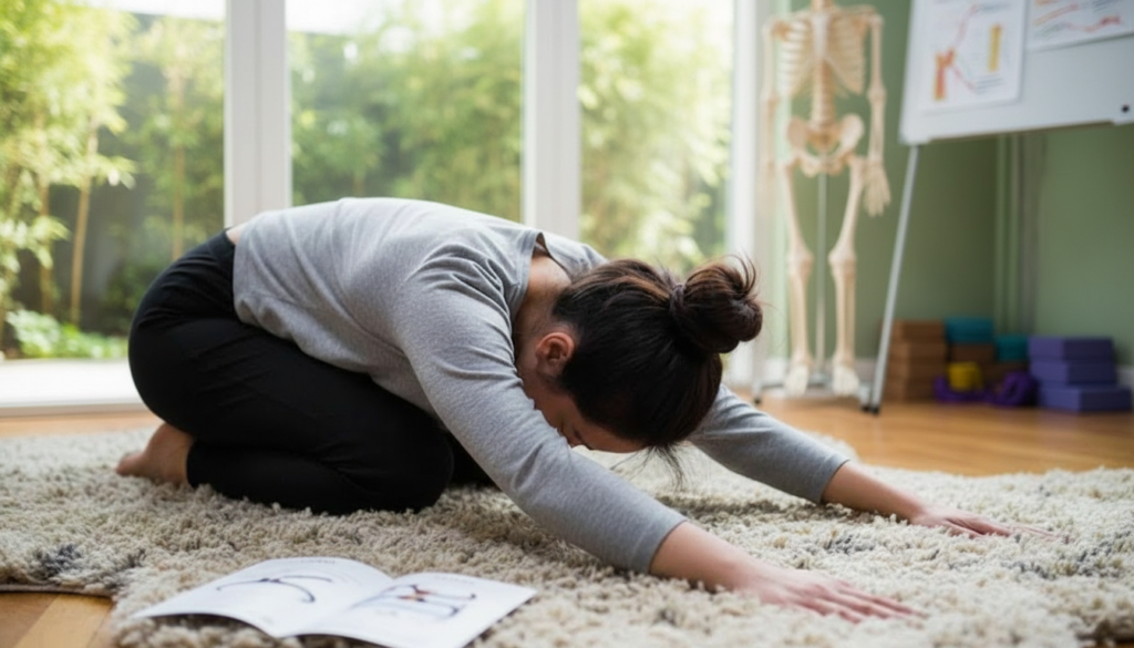 This routine focuses on gentle stretching and keeping the spine in the right place. Take your time with each pose and breathe steadily to help your muscles relax.