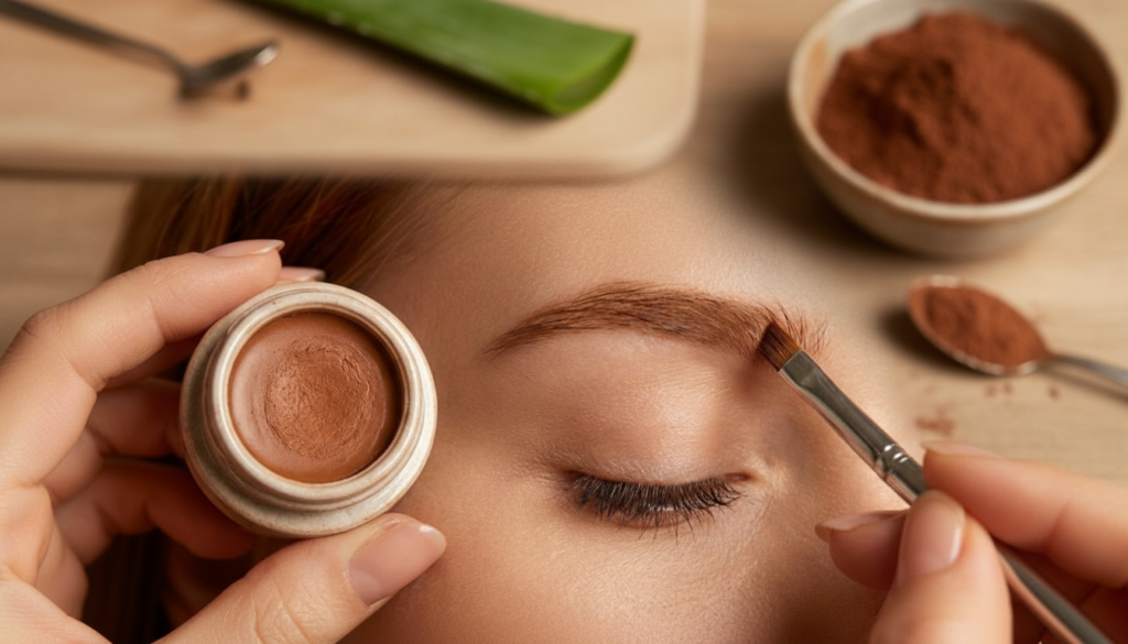 Cocoa powder adds warmth, depth, and colour that comes from nature. The deep brown colour works surprisingly well as a brow tint, especially for light to medium-dark shades. When mixed with aloe, cocoa makes a soft, stain-like colour instead of a strong, painted look.