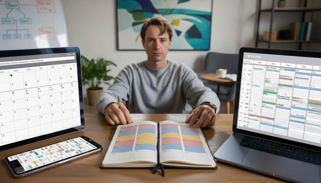 Maria is a project manager and the mother of two kids. Last year, she used the well-known “every hour scheduled” method she saw on YouTube. Her schedule was like Tetris on hard mode: emails from 8:00 to 8:30, a briefing from 8:30 to 9:00, deep work from 9:00 to 11:00, and even when she could eat. It worked for three days. Then a client crisis happened, her son forgot his sports bag, and the dog got sick. In less than a week, all of her carefully colored blocks were crossed out or ignored. She thought she had “failed the system,” but in reality, the system had failed her life as a person.