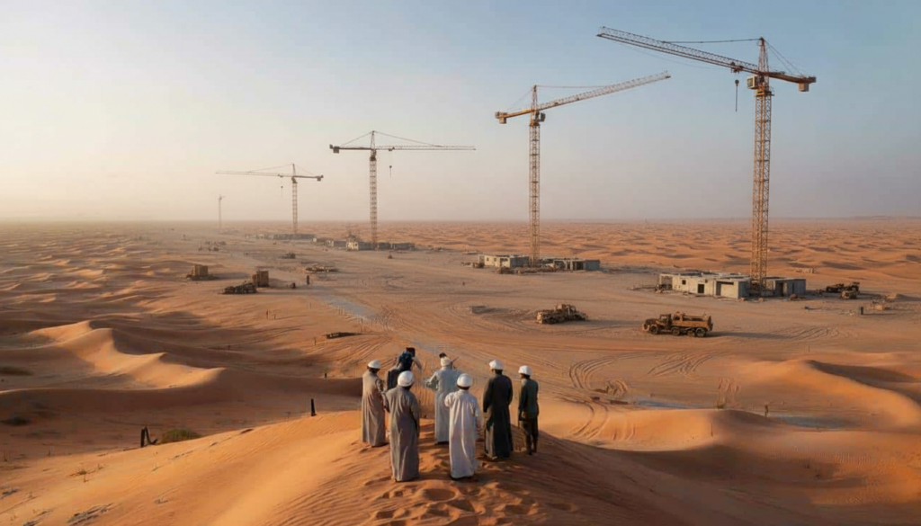 But by early 2024, satellite images told a quieter story. Construction was concentrated in a small segment. Reports from international media suggested scaled-down population targets and a slower build timeline. The gap between presentation and progress became harder to ignore.