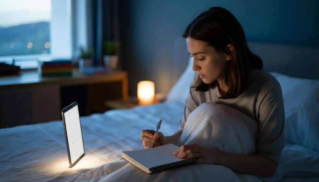 In deinem dunklen Schlafzimmer strahlt das Handy-Display viel zu hell. Du machst dir Gedanken über alles: Job, Miete, Gesundheit, Krieg, Klima, was, wenn… Du wälzt dich von einer Seite zur anderen und suchst nach der einzigen Gedankenspur, die dich müde macht. Nur die nächste Sorge kommt stattdessen. Obwohl du einfach nur daliegst, schlägt dein Herz schneller. Und irgendwo in den Tiefen des Gedächtnisses kommt dieser lästige Ratschlag: „Schreib dir deine Gedanken auf.“ Das klingt logisch. Es fühlt sich aber an, als wäre es ein weiterer Punkt auf der To-do-Liste, die dich sowieso schon auffrisst. Trotz alledem greifst du nur zögerlich zum Stift. Was glaubst du, wie es wäre, wenn du dir nur drei konkrete Dinge aufschreibst, die du tatsächlich beeinflussen kannst? Lediglich drei. Am heutigen Tag. Im Moment.